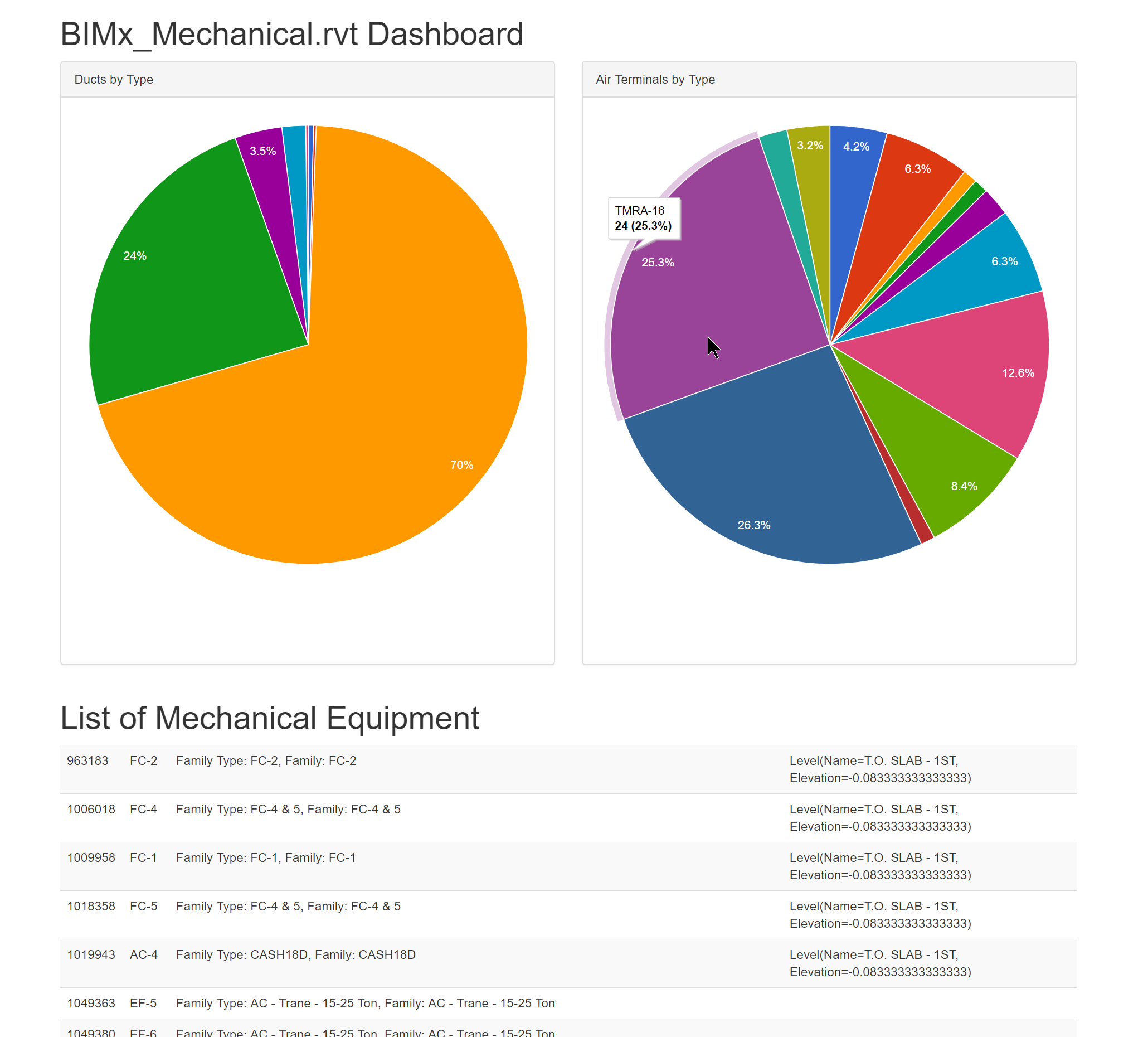 There are a few sample graphs included in the download below. Please keep in mind that these are extremely early examples of the possibilities of using Dynamo to extract Revit data and output HTML for display in any modern browser. Currently, I have been experimenting with a combination of Twitter Bootstrap and Google Charts, but if you have any suggestions on other frameworks or analytics tools, please make a suggestion in the comments below.