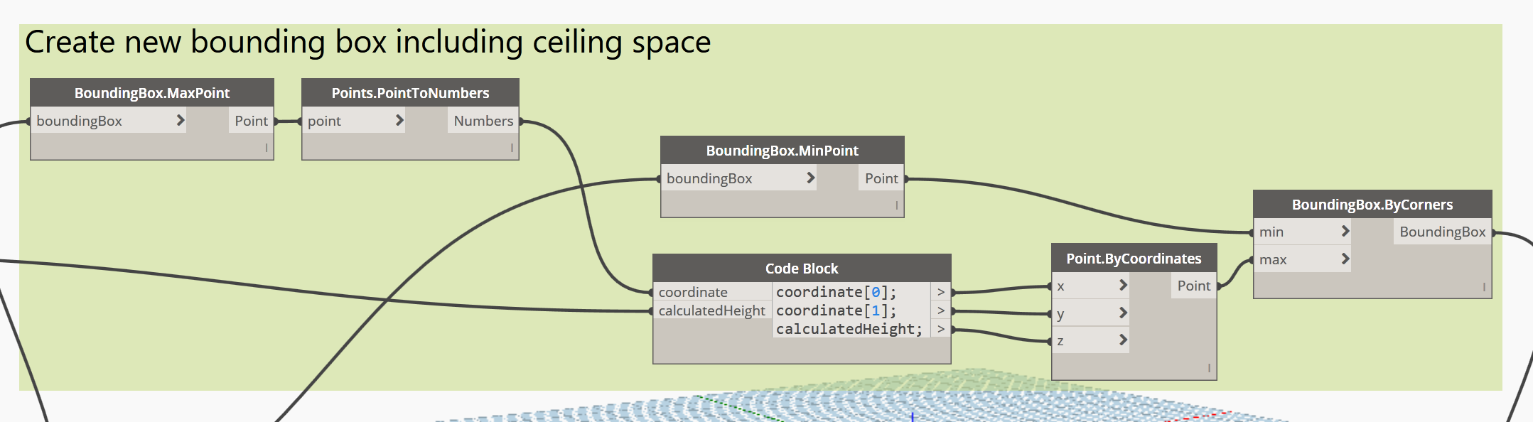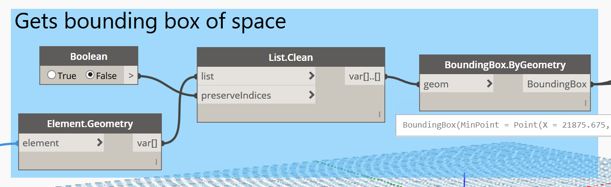 This graph first gets all elements of the chosen categories and then gets the BoundingBox of a space.