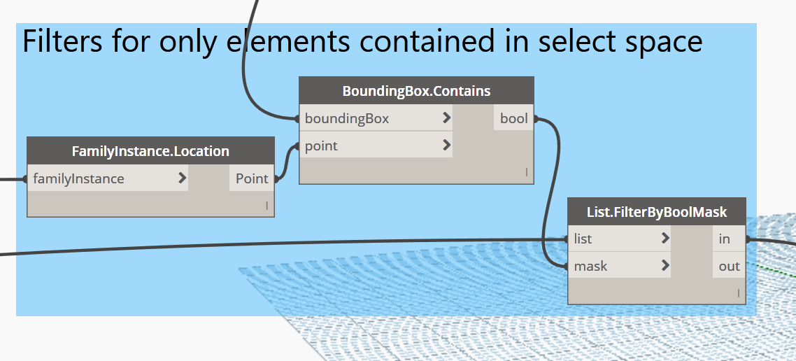 It then filters out the elements whose coordinates are not within the selected Space’s BoundingBox.