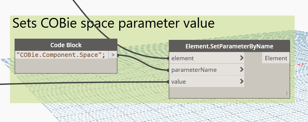 Finally, the graph pushes the Space’s “Number” parameter value into the “COBie.Component.Space” parameter.