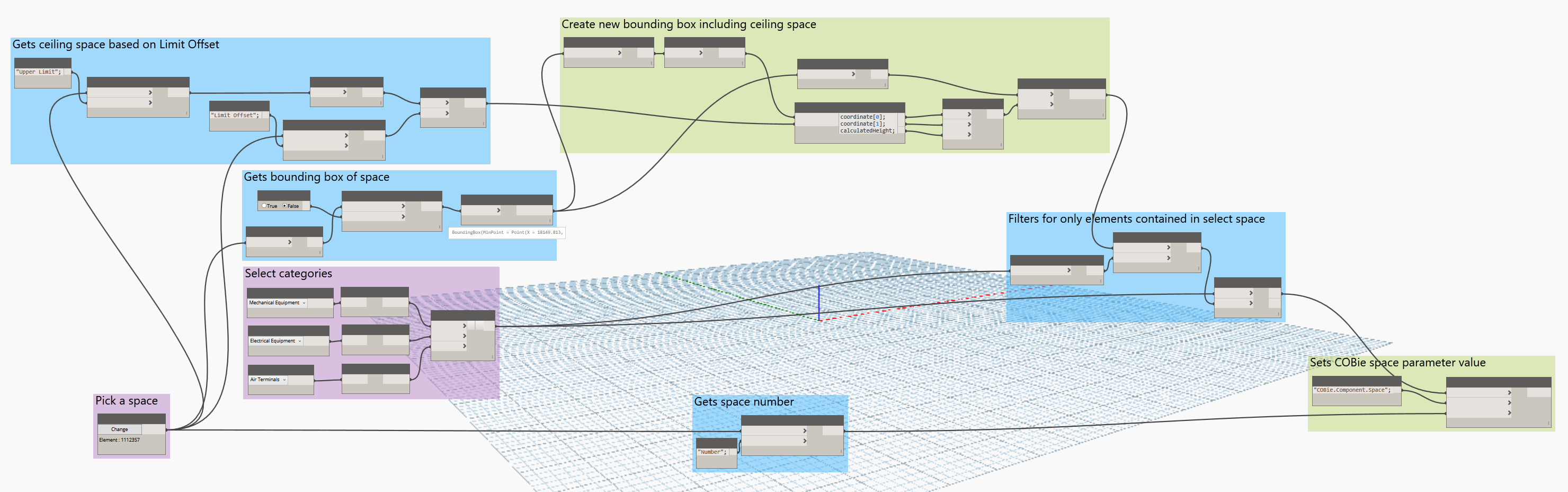 Dynamo Graph to push Space data into COBie.Component.Space including elements above the ceiling (MEP)