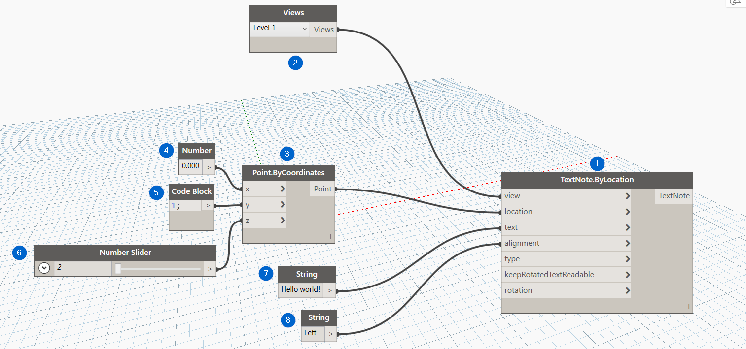 - Adding a TextNote to a view using only out-of-the-box (OOTB) nodes.