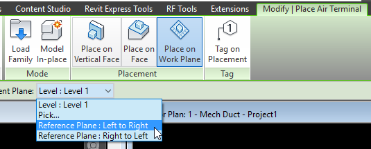 Notice that the diffuser that was placed on the “Right to Left” reference plane is upright and hosted properly. The air terminal that was placed on the reference plane drawn from left to right is hosted upside down.